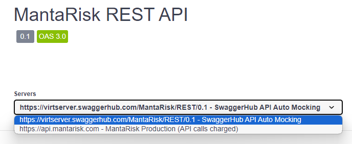 - MantaRisk Production. This is the real risk engine which performs on-demand analytics. To use this you need an API key generated on our UI. Calls to this service are charged as per usual.