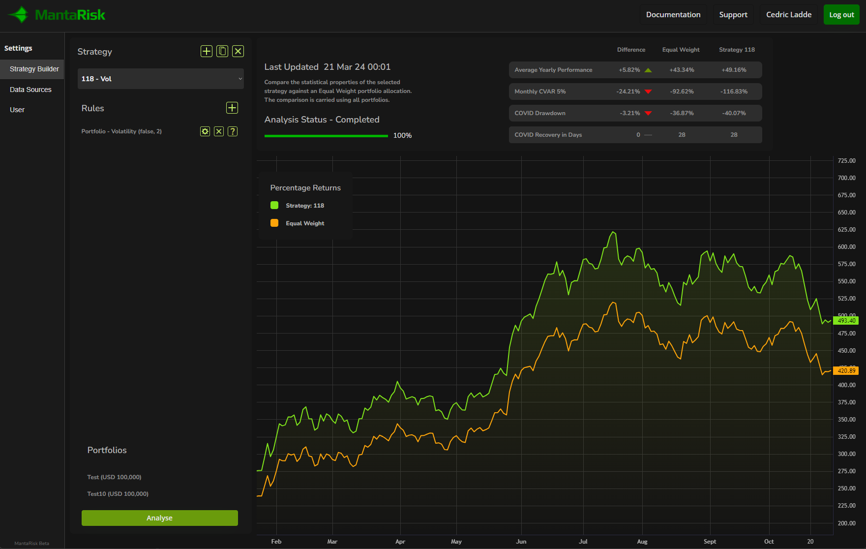 - Rebalancing methodology tuning - statistical testing of MantaRisk's risk management methodologies has started and has alread led to multiple algorithmic improvements